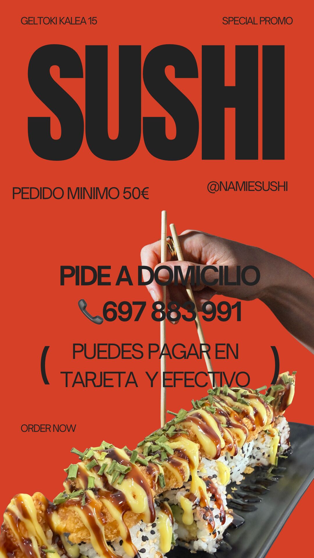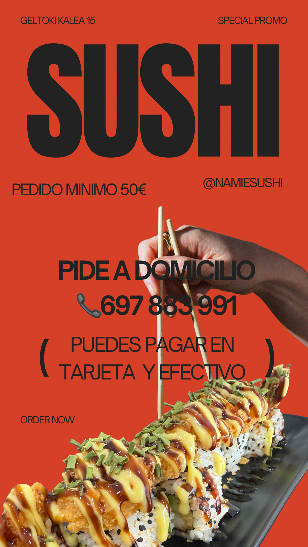 Bienvenidos a Namie Sushi Take away & delivery.. Puedes Realizar tu pedido al 697883991.
